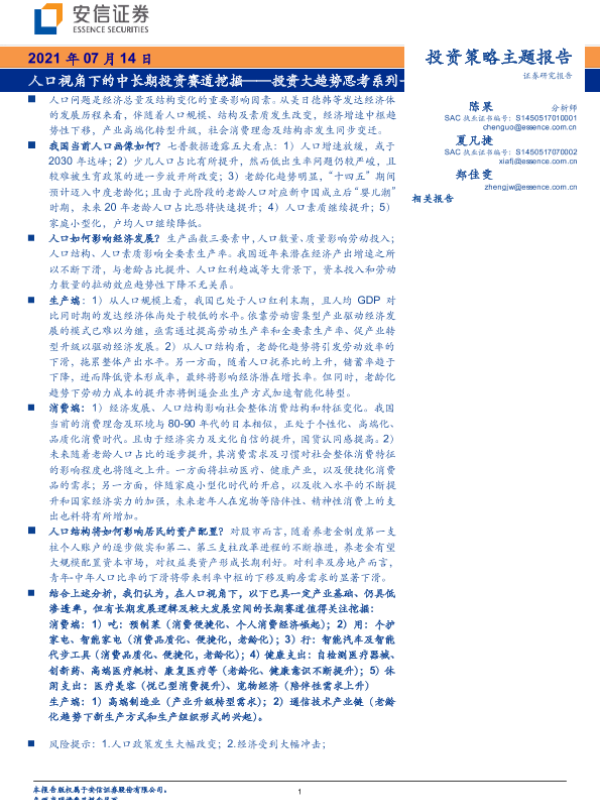 【安信证券】【20210714】投资大趋势思考系列一:人口视角下的中长期投资赛道挖掘-35页 行业研究