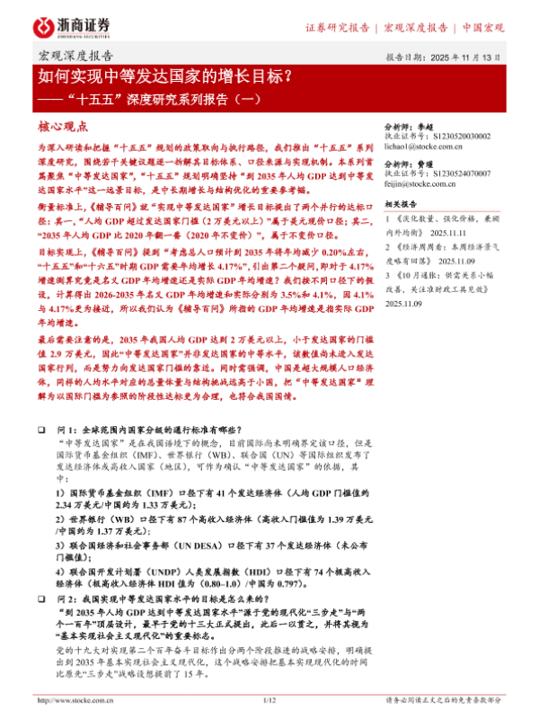 【浙商证券】【202511】“十五五”深度研究系列报告(一):如何实现中等发达国家的增长目标?-12页 证券期货研究报告