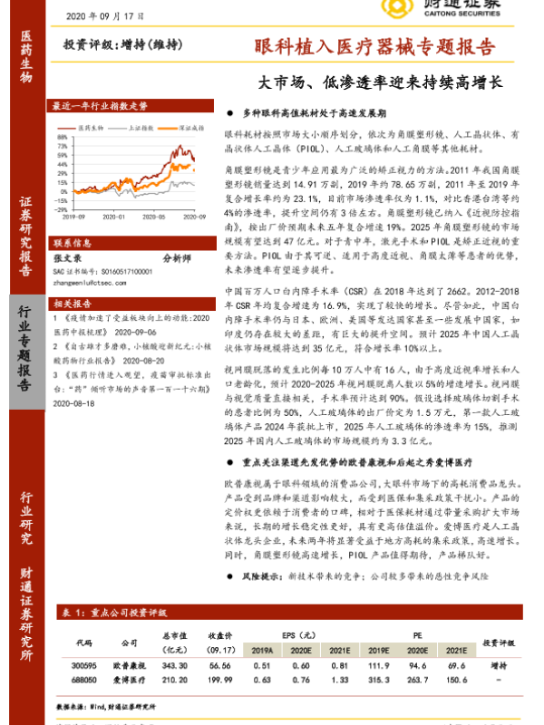 【财通证券】【20200917】眼科植入医疗器械专题报告:大市场、低渗透率迎来持续高增长-5页 行业研究