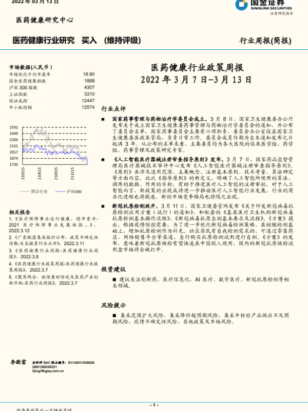 【国金证券】【20220313】医药健康行业政策周报-10页 行业研究