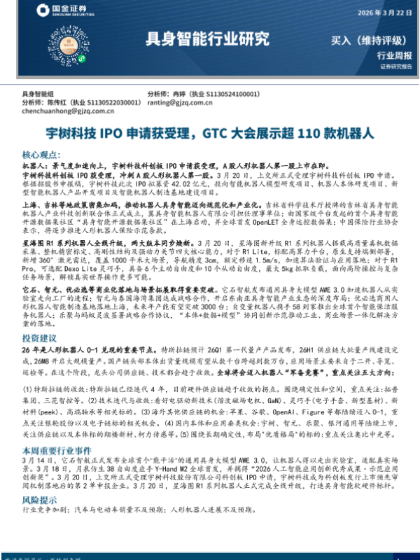 【国金证券】【202603】具身智能行业研究:宇树科技IPO申请获受理,GTC大会展示超110款机器人-13页 证券期货研究报告