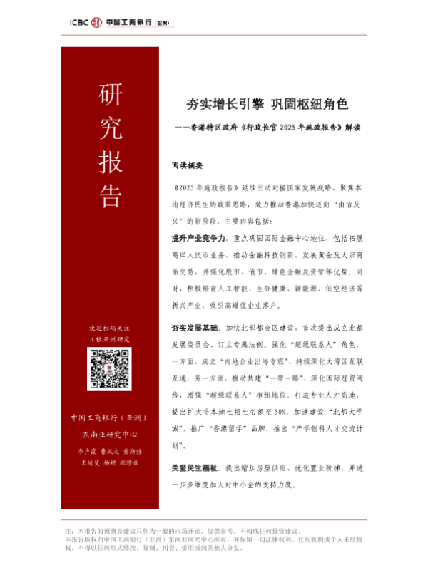 【中国工商银行(亚洲)东南亚研究中心】【202509】夯实增长引擎巩固枢纽角色——香港特区政府《行政长官2025年施政报告》解读-21页 政策文件