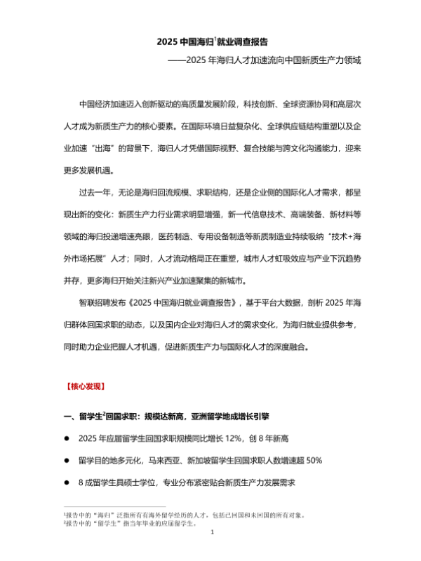 【智联招聘】【2025】2025中国海归1就业调查报告-16页 市场调研
