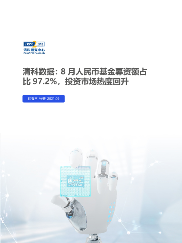 【清科研究中心】【20210910】清科数据:8月人民币基金募资额占比97.2%,投资市场热度回升-16页 行业研究
