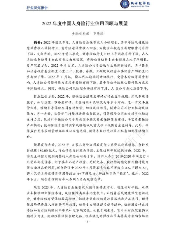 【新世纪评级】【20230101】2023年中国人身险行业信用回顾与2024年展望-14页 行业研究