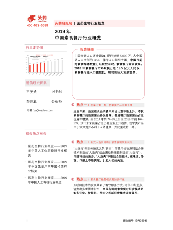 【头豹研究院】【2019】中国素食餐厅行业概览-34页 行业研究