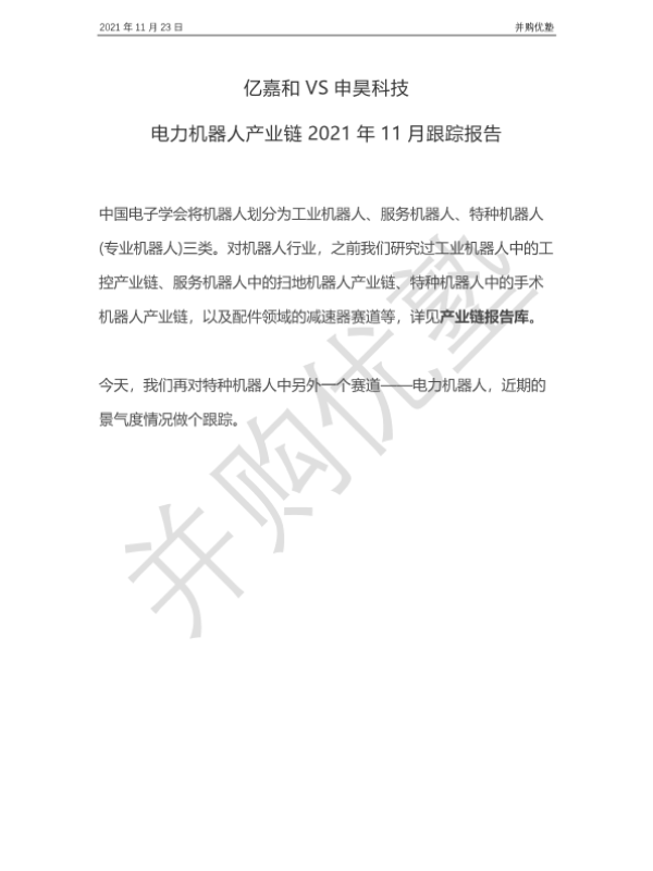 【并购优塾】【20211123】亿嘉和VS申昊科技:电力机器人产业链2021年11月跟踪报告-20页 行业研究
