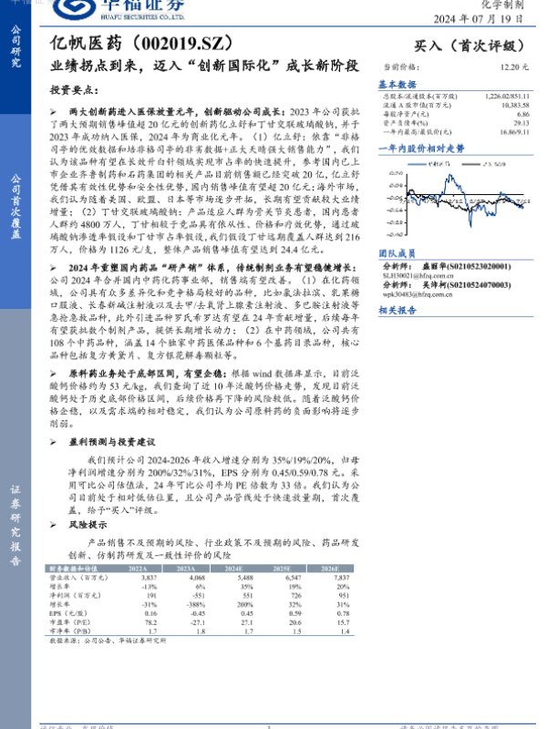 【华福证券】【20240719】亿帆医药-业绩拐点到来,迈入“创新国际化”成长新阶段-25页 公司研究
