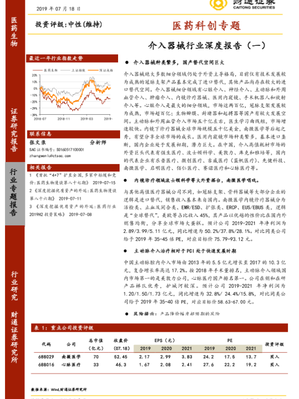 【财通证券】【20190718】介入器械行业深度报告(一):医药科创专题-38页 行业研究