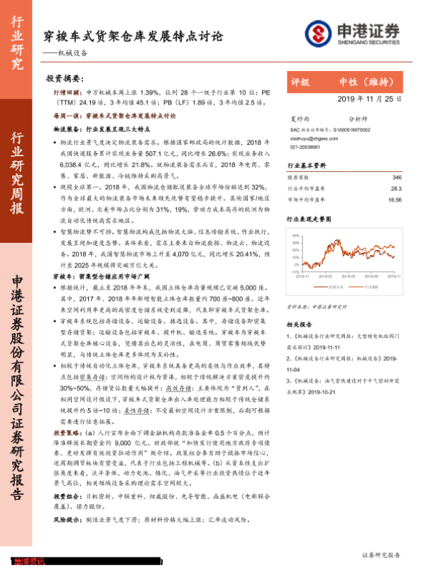 【申港证券】【20191125】20191125-申港证券-机械设备行业研究周报:穿梭车式货架仓库发展特点讨论-17页 行业研究