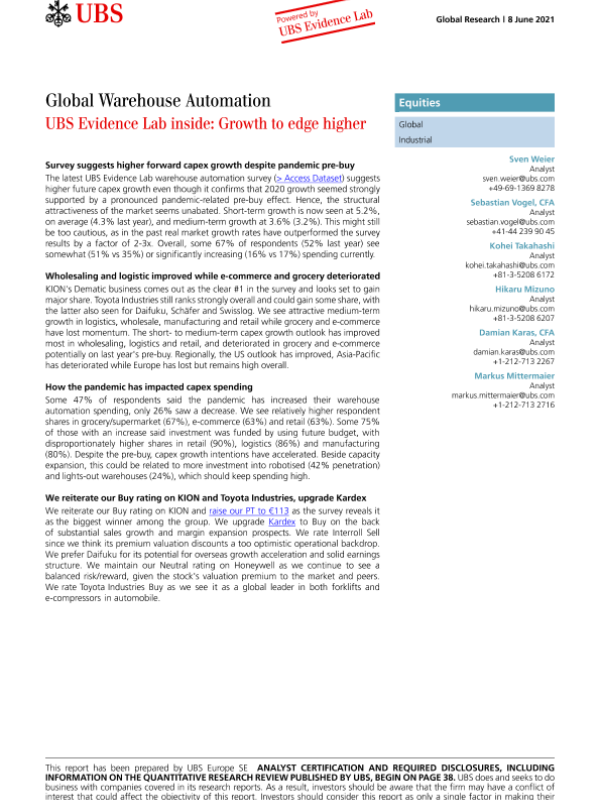 【瑞银】【20210608】全球仓库自动化:增长将走高-43页 行业研究