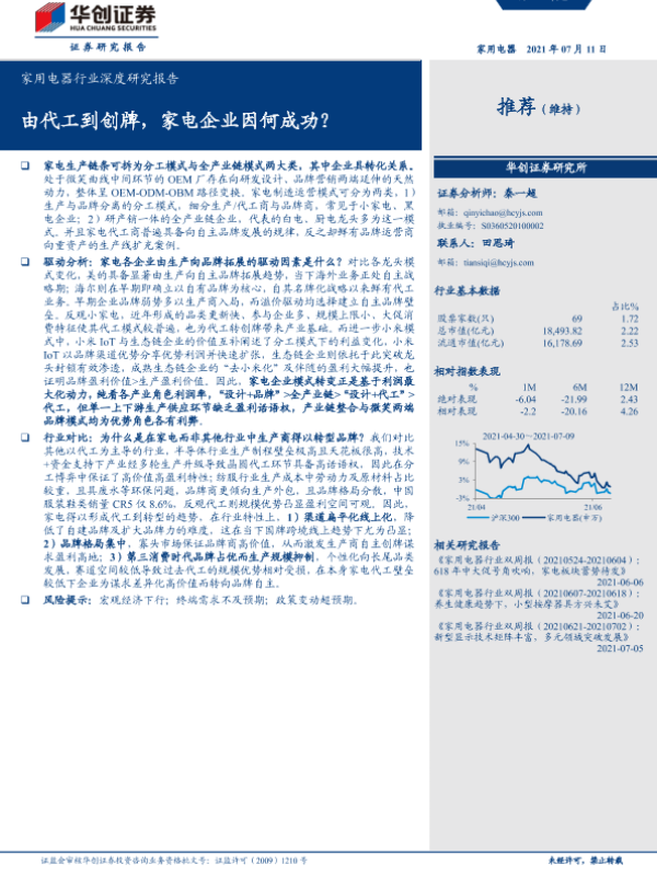 【华创证券】【20210711】家用电器行业深度研究报告:由代工到创牌,家电企业因何成功?-32页 行业研究