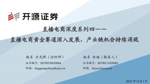 【开源证券】【20211201】互联网传媒行业直播电商深度系列四:掘金直播电商黄金赛道深入发展,产业链机会持续涌现-33页 行业研究