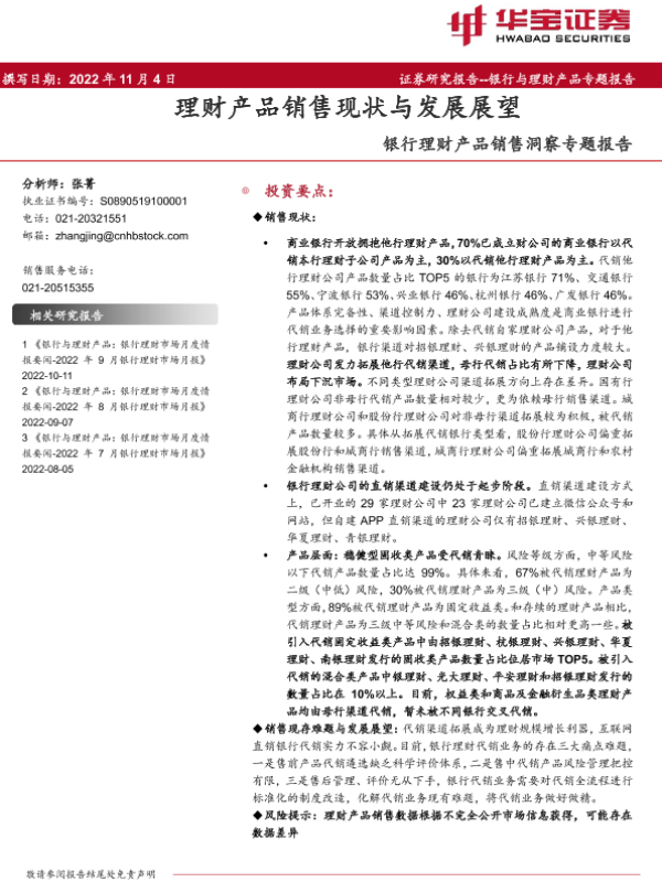 【华宝证券】【20221104】银行理财产品销售洞察专题报告:理财产品销售现状与发展展望-15页 行业研究