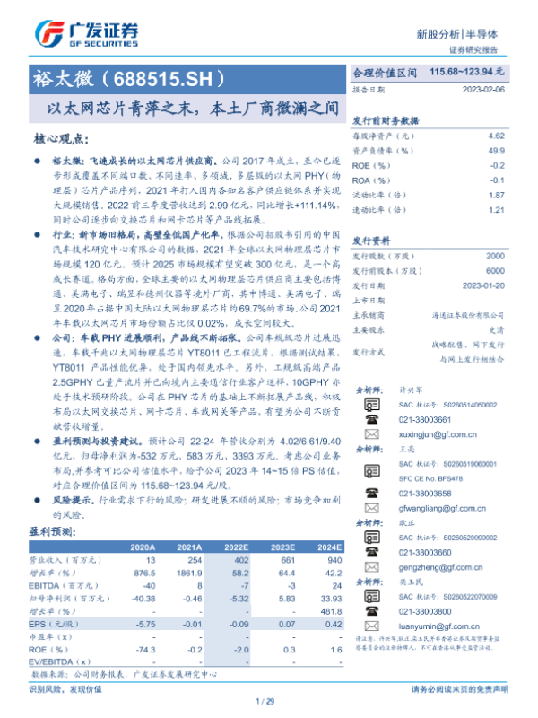 【广发证券】【20230206】裕太微(688515)以太网芯片青萍之末,本土厂商微澜之间-29页 行业研究