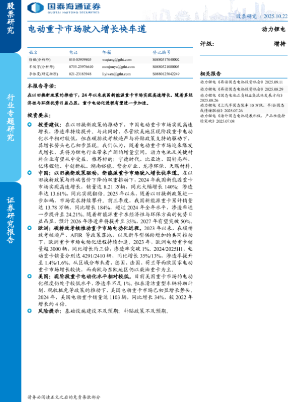 【国泰海通证券】【202510】电动重卡市场驶入增长快车道-10页 证券期货研究报告