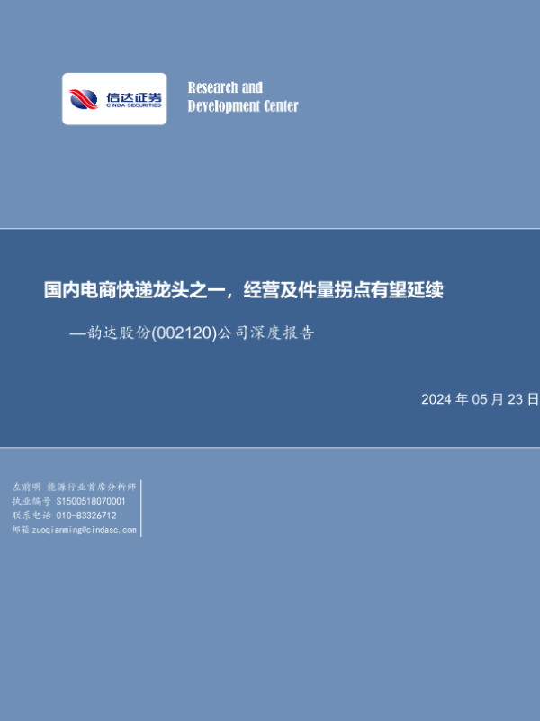 【信达证券】【20240523】国内电商快递龙头之一,经营及件量拐点有望延续-25页 行业研究