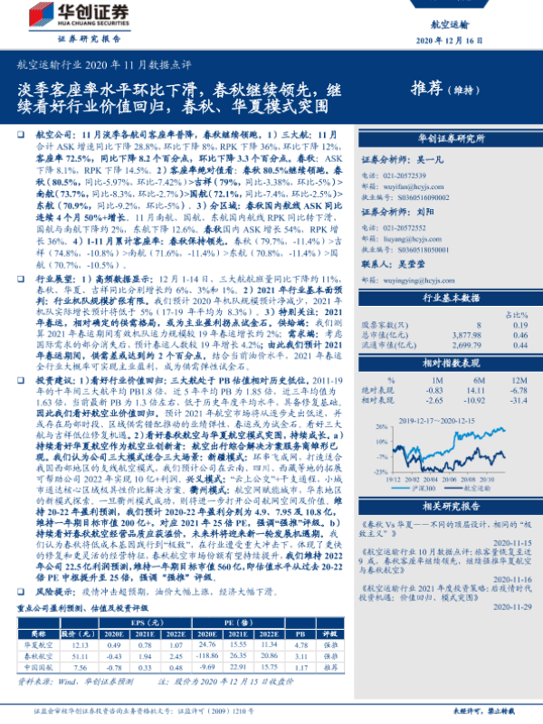 【华创证券】【20201216】航空运输行业2020年11月数据点评-10页 行业研究