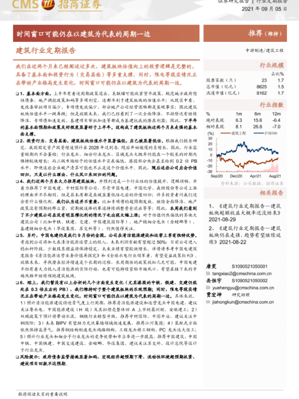 【海通证券】【20210905】建筑行业定期报告:时间窗口可能仍在以建筑为代表的周期一边-3页 行业研究