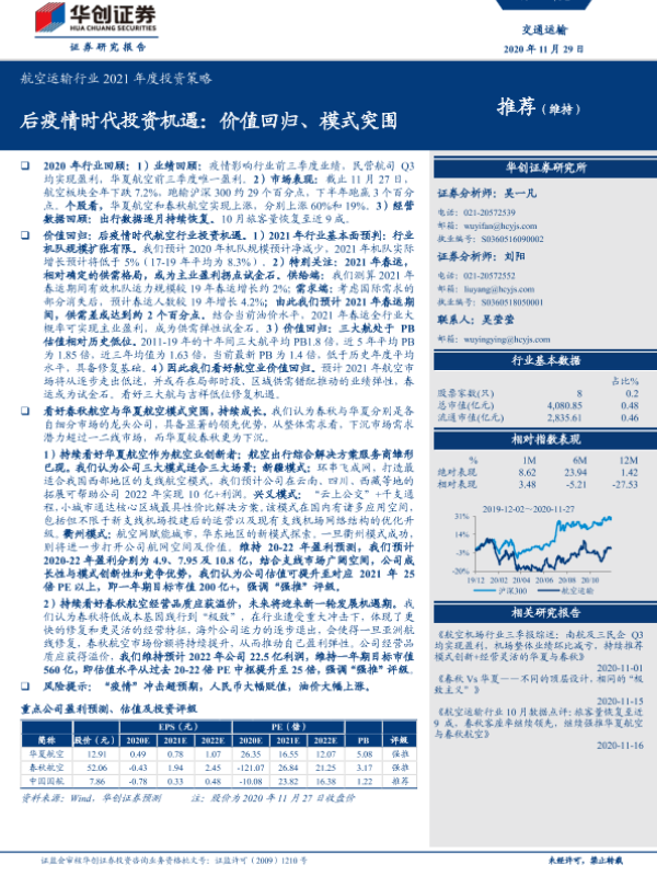 【华创证券】【20201129】航空运输行业2021年度投资策略:后疫情时代投资机遇:价值回归、模式突围-33页 行业研究