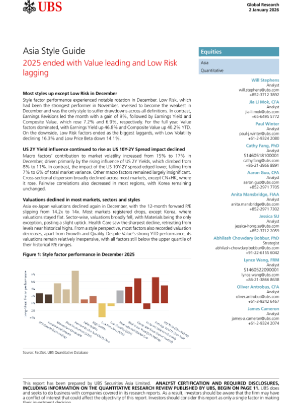 【UBS】【2025】Asia Style Guide 2025 ended with Value leading and Low Risk lagging-15页 证券期货研究报告