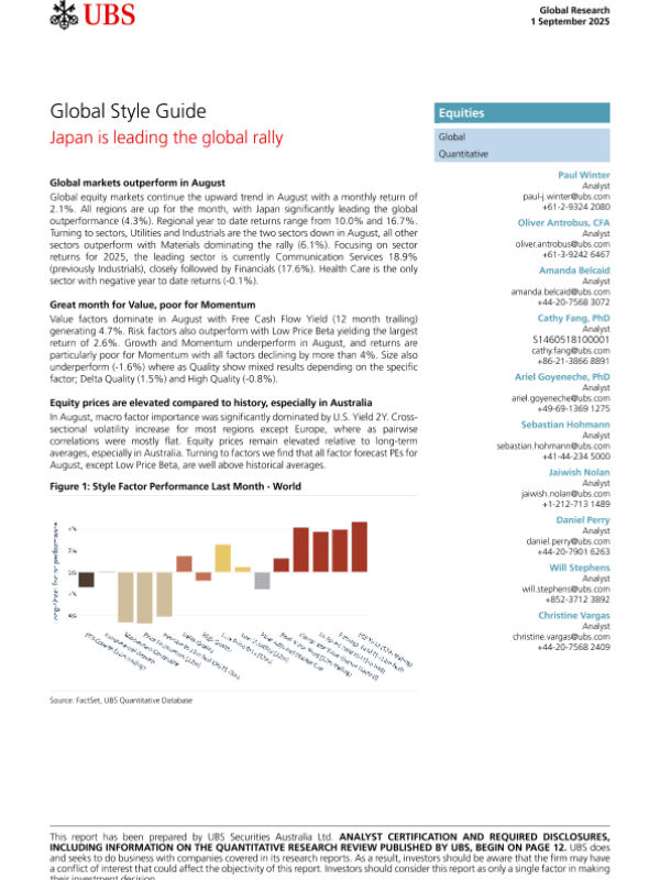 【UBS Securities Australia Ltd】【202509】Japan is leading the global rally-16页 证券期货研究报告