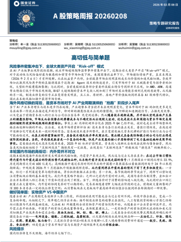 【国金证券】【202602】A股策略周报:高切低与简单题-10页 证券期货研究报告
