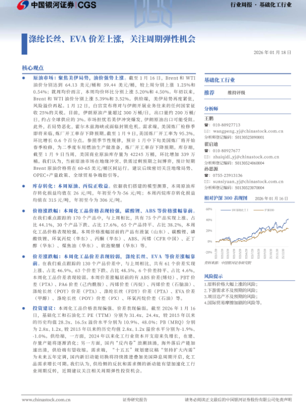 【银河证券】【202601】涤纶长丝、EVA价差上涨,关注周期弹性机会-20页 证券期货研究报告
