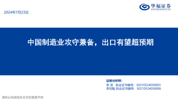 【华福证券】【20240723】策略专题报告:中国制造业攻守兼备,出口有望超预期-41页 行业研究