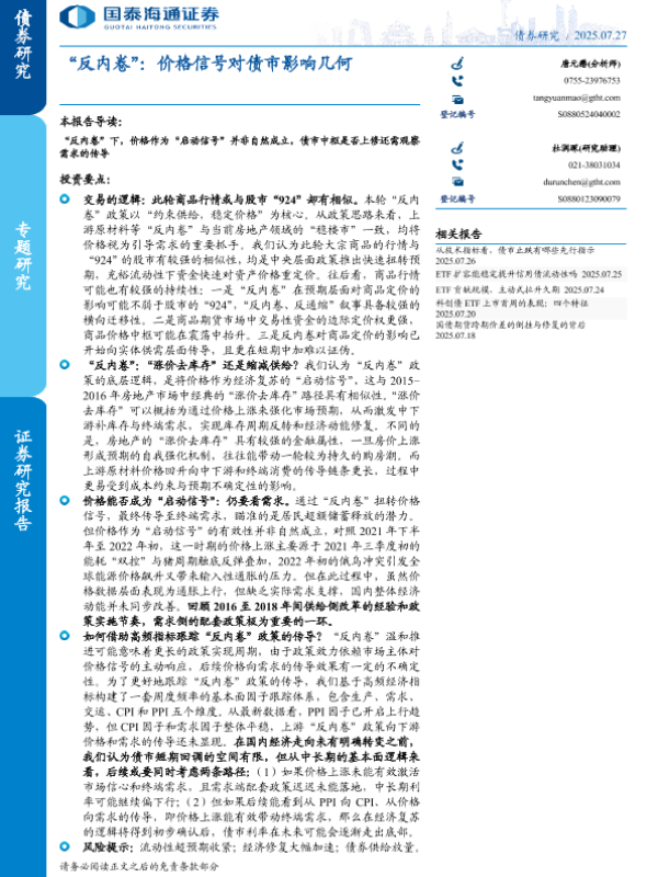 【国泰海通证券】【202507】“反内卷”:价格信号对债市影响几何-10页 证券期货研究报告