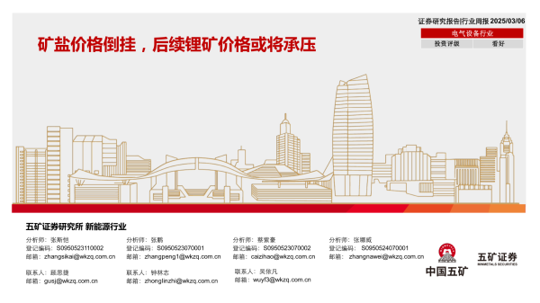 【五矿证券】【20250306】五矿证券-电气设备行业行业周报:矿盐价格倒挂,后续锂矿价格或将承压-50页 行业研究