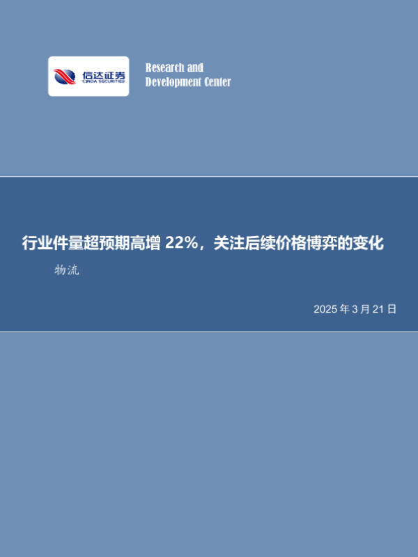 【信达证券】【20250321】快递行业月度专题:行业件量增速超预期,1-2月累计增速22.4%-12页 行业研究