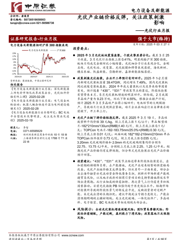 【中原证券】【20250327】光伏产业链价格反弹,关注政策刺激影响-16页 行业研究