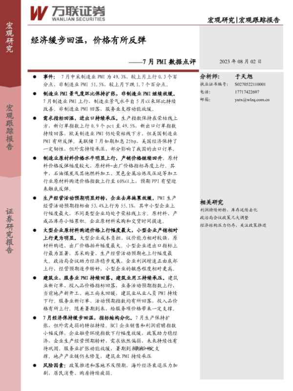 【万联证券】【20230802】经济缓步回温,价格有所反弹——7月PMI数据点评-7页 宏观策略