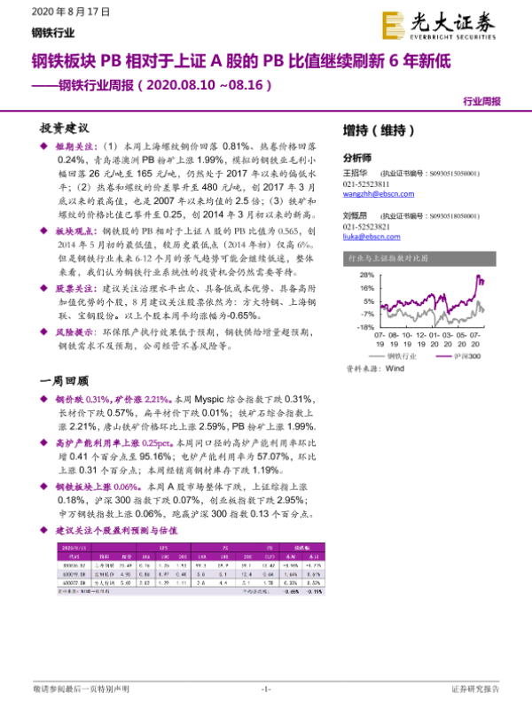 【光大证券】【20200817】钢铁行业周报:钢铁板块PB相对于上证A股的PB比值继续刷新6年新低-8页 行业研究