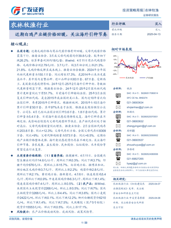 【广发证券】【20250413】近期白鸡产业链价格回暖,关注海外引种节奏-22页 证券期货研究报告