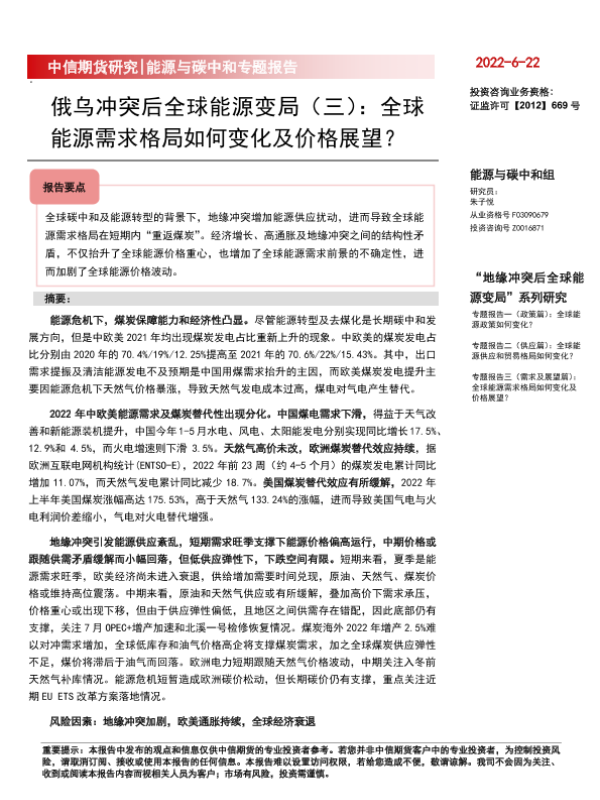 【中信期货】【20220622】能源与碳中和专题报告:俄乌冲突后全球能源变局(三),全球能源需求格局如何变化及价格展望?-16页 行业研究