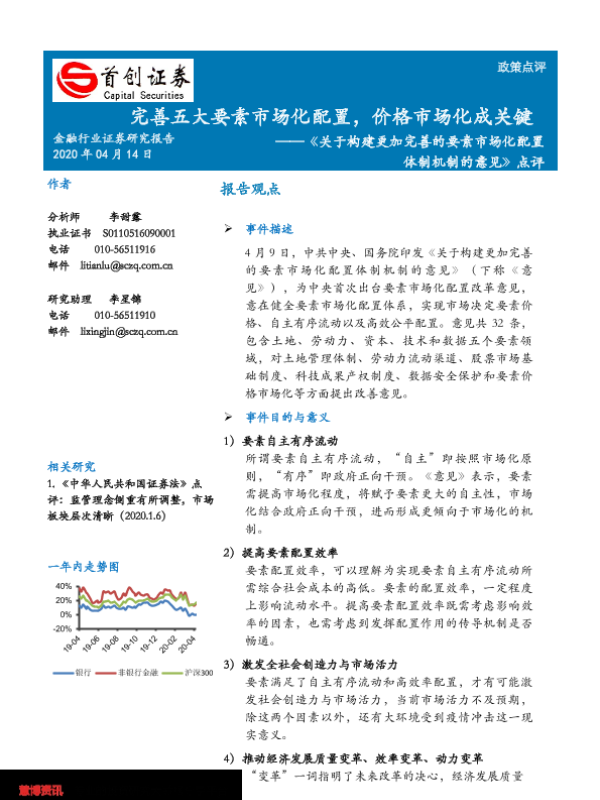 【首创证券】【20200414】关于构建更加完善的要素市场化配置体制机制的意见点评-4页 行业研究
