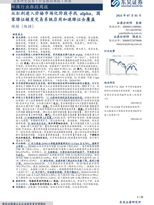 【东吴证券】【20240701】从红利进入价格市场化阶段寻找alpha,国家绿证核发交易系统启用加速绿证全覆盖-33页 行业研究