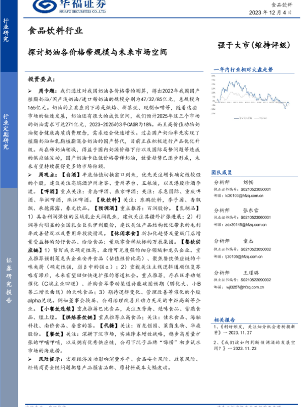 【华福证券】【20231204】食品饮料行业:探讨奶油各价格带规模与未来市场空间-17页 行业研究