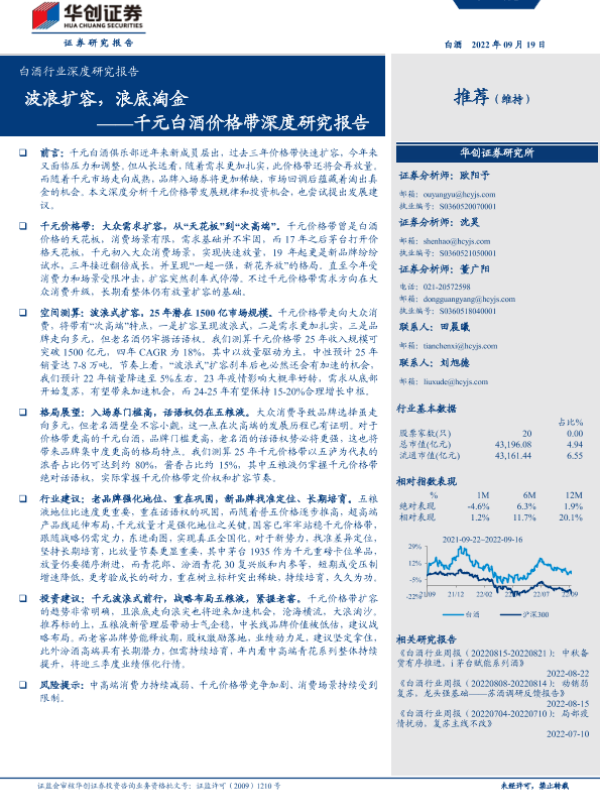 【华创证券】【20220919】20220919-华创证券-白酒行业深度研究报告:千元白酒价格带深度研究报告-波浪扩容,浪底淘金-28页 行业研究