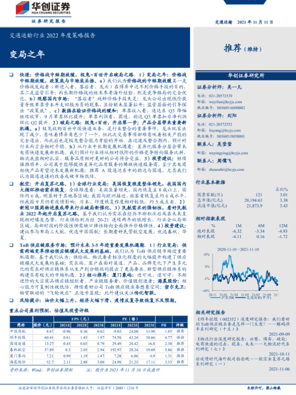 【华创证券】【20211111】交通运输行业2022年度策略报告:变局之年-41页 行业研究