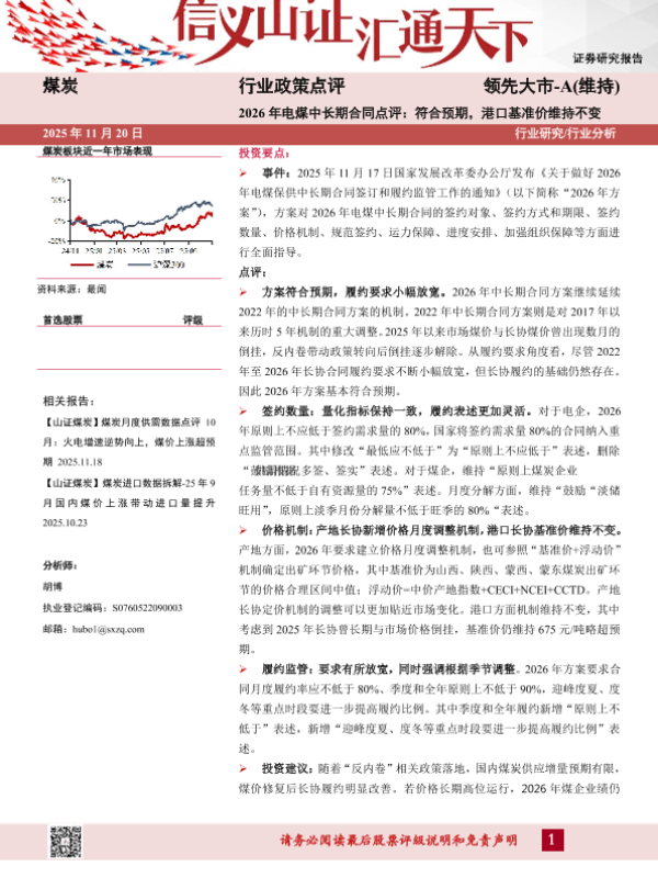 【山西证券】【202511】2026年电煤中长期合同点评:符合预期,港口基准价维持不变-6页 证券期货研究报告