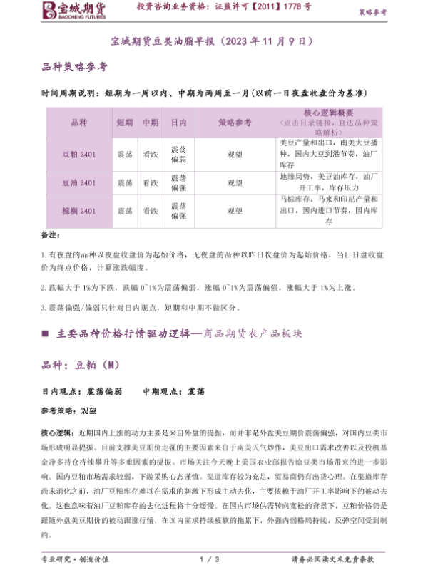 【宝城期货】【20231109】宝城期货豆类油脂早报(2023年11月9日)-3页 行业研究
