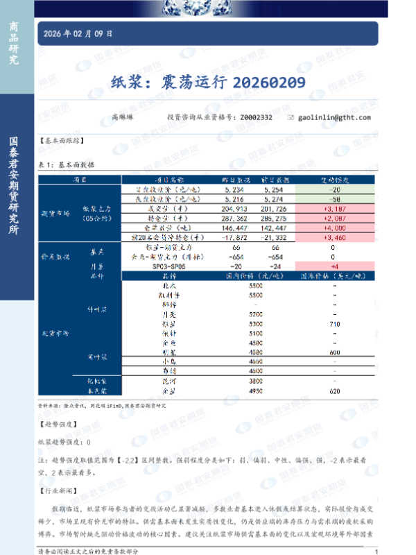 【国泰君安期货】【202602】纸浆:震荡运行-3页 证券期货研究报告