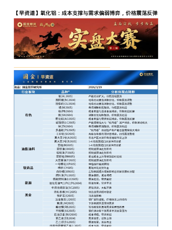 【国金期货】【202603】氧化铝:成本支撑与需求偏弱博弈,价格震荡反弹-3页 证券期货研究报告