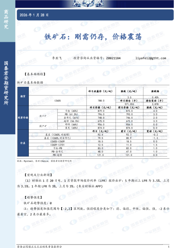 【国泰君安期货】【202601】铁矿石:刚需仍存,价格震荡-2页 证券期货研究报告