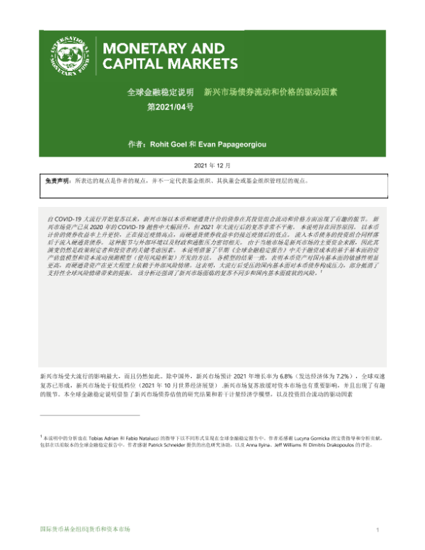 【IMF】【2021】新兴市场债券流动和价格的驱动因素-14页 行业研究