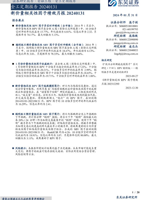 【东吴证券】【20240131】新价量相关性因子绩效月报-20240131-20页 行业研究