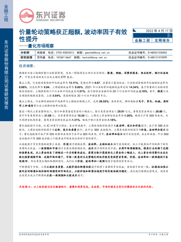 【东兴证券】【20220417】量化市场观察:价量轮动策略获正超额,波动率因子有效性提升-21页 行业研究